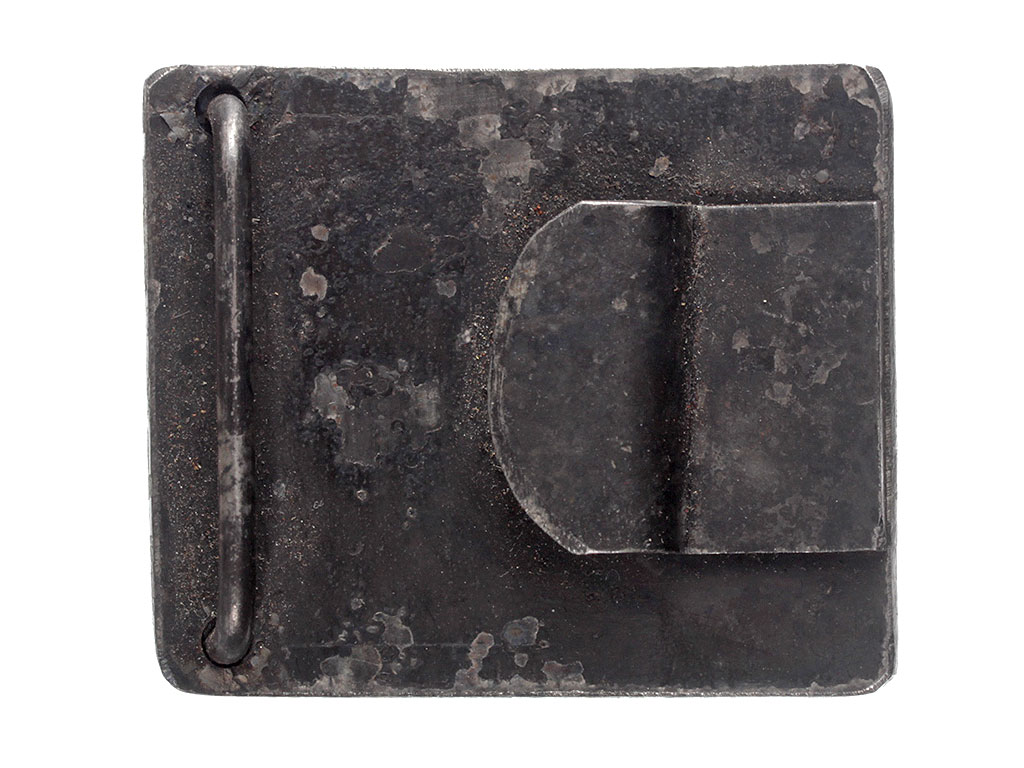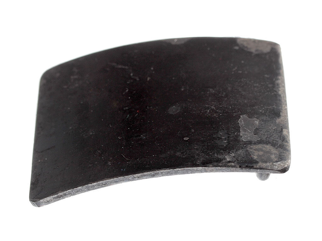 Воронёная стальная бляха, по образцу использовавшихся в царствование Александра Третьего. Такие пряжки использовались во всей русской армии, а в первую мировую войну они выдавались чинам ополчения и второочередным полкам пополнения вместе с ремнями.