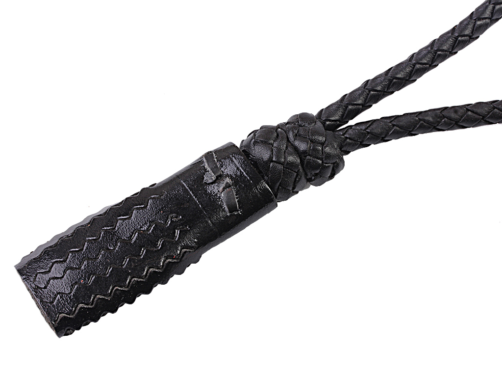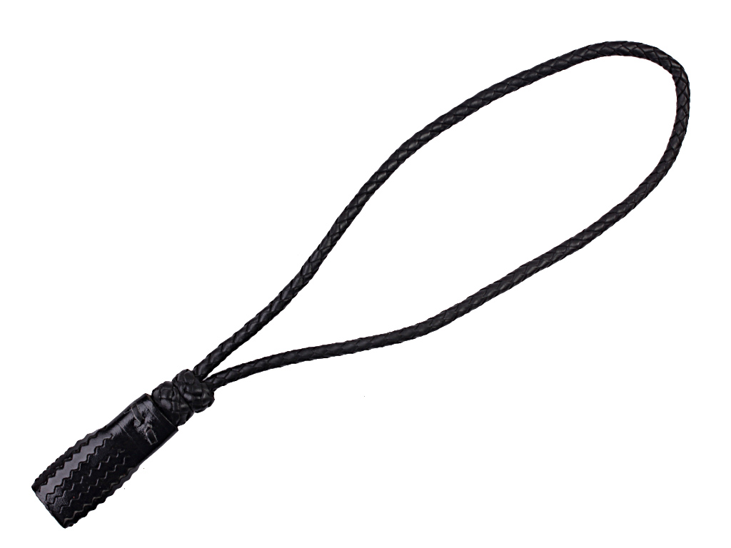 Копия очень высокого качества, черная кожа, состоит из плетеного шнура с двумя подвижными варворками и кисти с зубчатой бахромой.