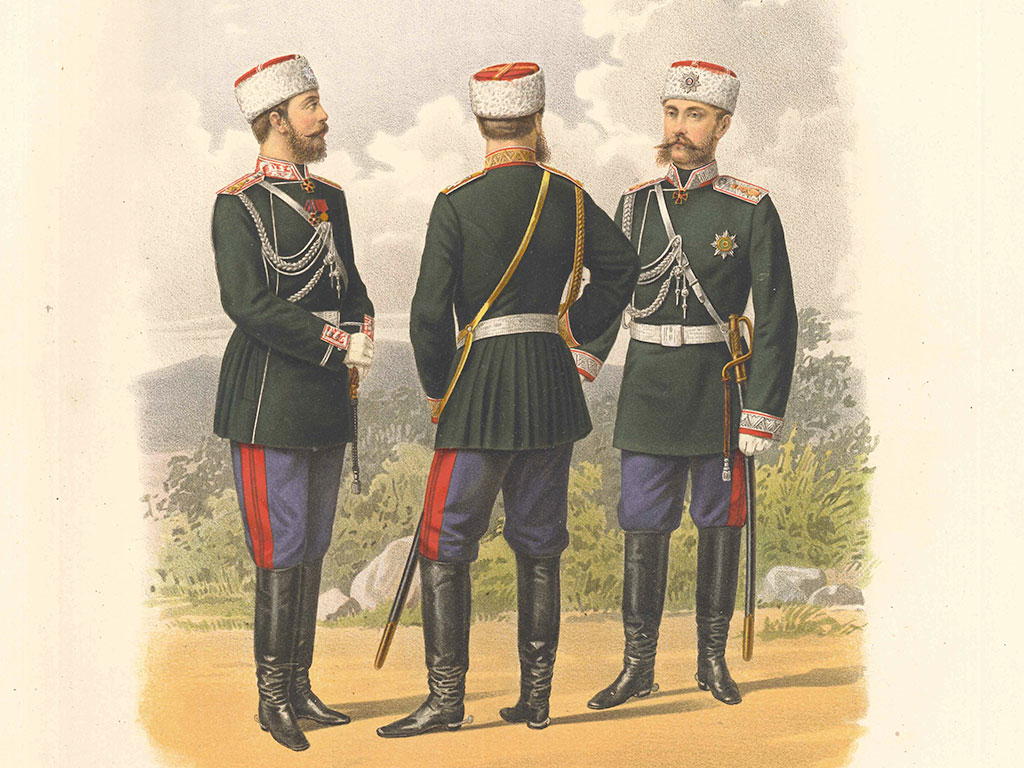 В этот же период начинается постепенный уход от фрачного покроя мундира. Появляется мундир сюртучного типа, на котором ношение пояса-шарфа предусмотрено не было. В кавказских казачьих частях была введена форма, похожая на одежду горцев также без пояса-шарфа.