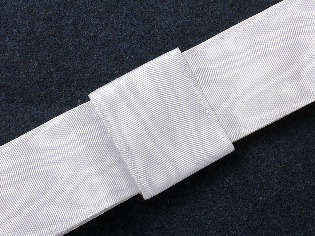 Копия очень высокого качества, при изготовлении за основу взят оригинальный Свитский офицерский пояс-шарф из белого муара.