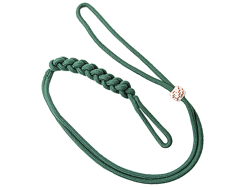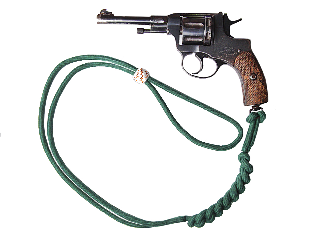 Качественная копия унтер-офицерского револьверного шнура четвертых полков пехотных дивизий. Шнур (в Приказах он именуется "снур", в более ранних источниках - "штерт для револьвера") изготовлен из темно-зеленого цвета нити (в четвертых полках также носился черный шнур). Унтер-офицерский шнур отличается от солдатского только варворкой (подвижной гайкой, служащей для фиксации шнура): у нижних чинов она одного цвета со шнуром, у унтер-офицеров - из шелковой нити белого цвета с вплетениями черных и оранжевых нитей.
