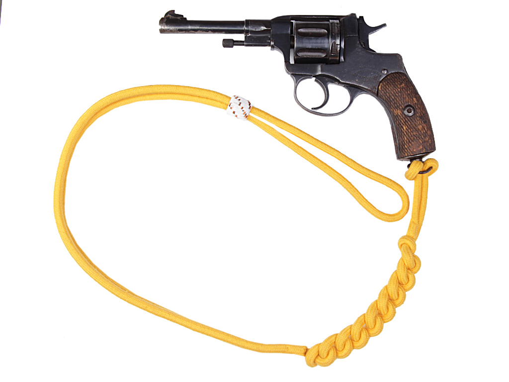 Качественная копия унтер-офицерского револьверного шнура Третьей гвардейской пехотной дивизии и Гвардейского полевого жандармского эскадрона. Шнур (в Приказах он именуется "снур", в более ранних источниках - "штерт для револьвера") изготовлен из желтого цвета нити. Унтер-офицерский шнур отличается от солдатского только варворкой (подвижной гайкой, служащей для фиксации шнура): у нижних чинов она одного цвета со шнуром, у унтер-офицеров - из шелковой нити белого цвета с вплетениями черных и оранжевых нитей.