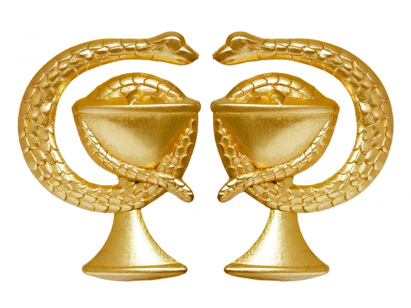 Качественная, изготовленная штампом копия эмблем на петлицы / погоны РККА / НКВД образца 1936 / 1943 годов (Военно-медицинский состав / Медицинская служба).
