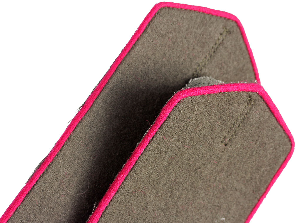 Полевые погоны рядового состава и младшего комначсостава пятиугольные из сукна цвета хаки с цветной окантовкой, без эмблем родов войск и служб (!).