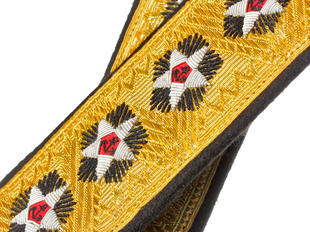 Погоны суконные, с нашитым вдоль погона галуном особого рисунка из золоченой или серебреной волоки.