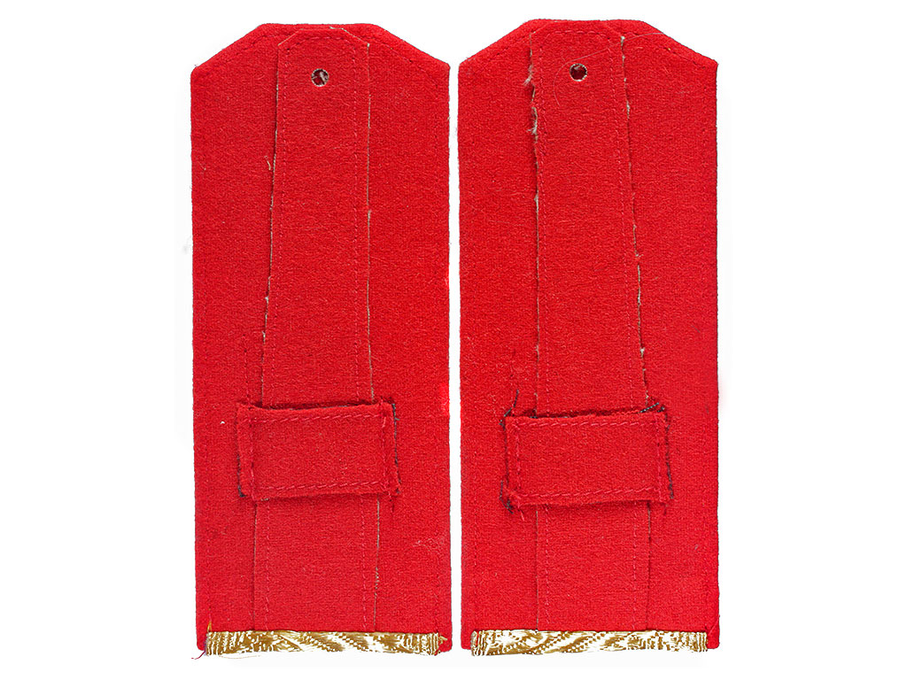 Погоны — полевые и повседневные — окантованы по краям, кроме нижнего края, цветным суконным кантом.