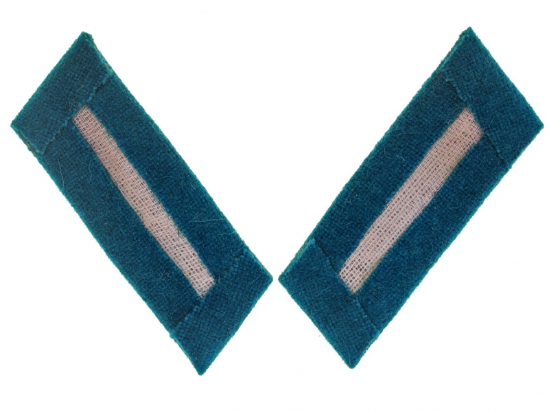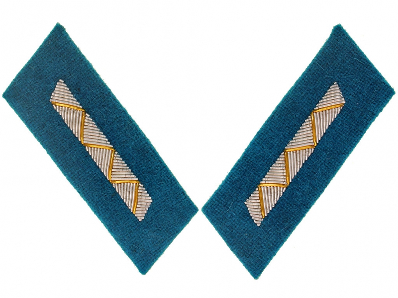 Голубые суконные петлицы с серебряным шитьем на парадный мундир младшего офицерского состава авиации РККА (от младшего лейтенанта до капитана включительно). Нестроевой состав, административная и техническая служба. Петлицы на мундир Парада Победы 1945 года.