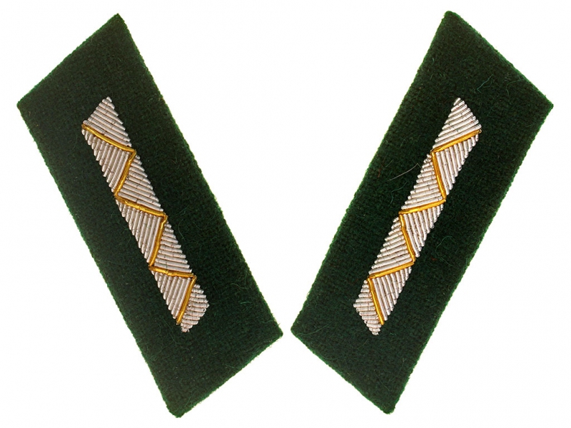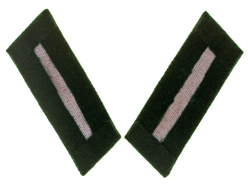 Темно-зеленые суконные петлицы с серебряным шитьем на парадный мундир младшего офицерского состава РККА (от младшего лейтенанта до капитана включительно) - военные врачи и военные юристы. Петлицы на мундир Парада Победы 1945 года.