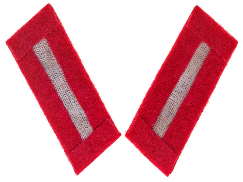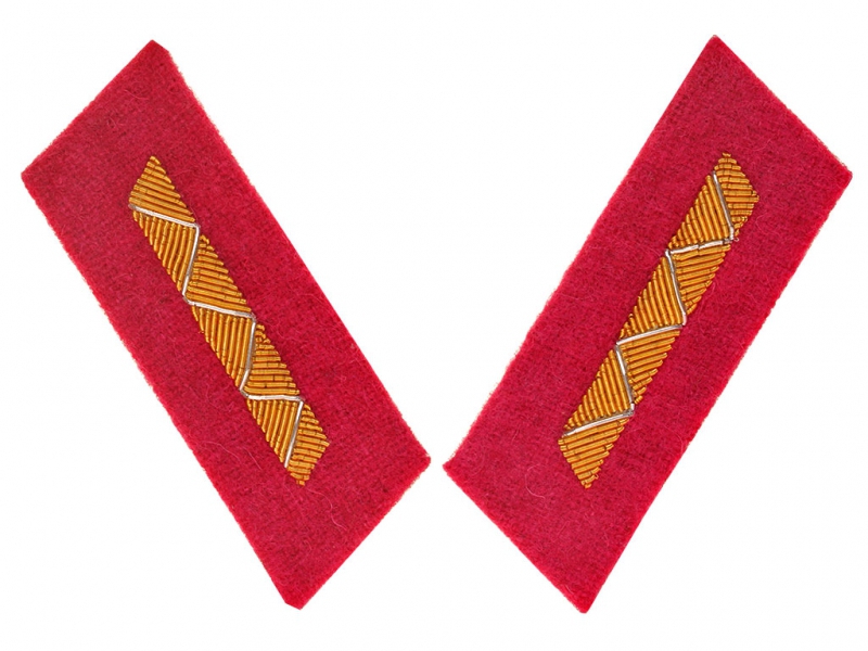 Малиновые петлицы с золотым шитьем на парадный мундир младшего офицерского состава пехоты РККА (от младшего лейтенанта до капитана включительно). Петлицы на мундир Парада Победы 1945 года.