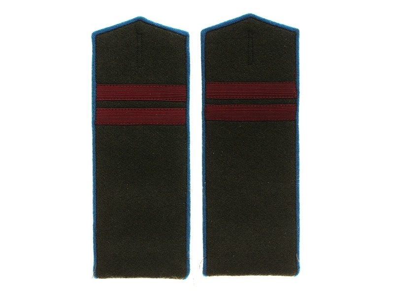 Полевые погоны рядового состава и младшего комначсостава пятиугольные из сукна цвета хаки с цветной окантовкой, без эмблем родов войск и служб (!).
