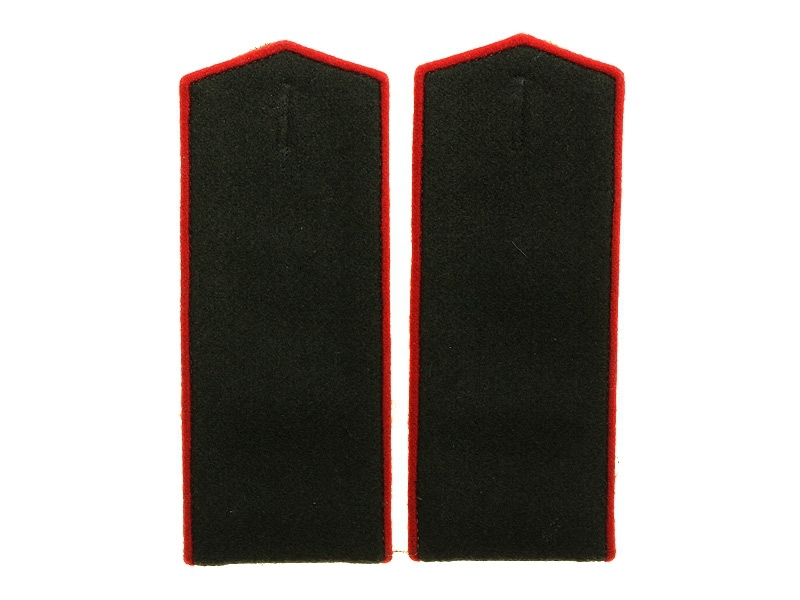 Повседневные погоны рядового состава и младшего комначсостава пятиугольные из сукна цвета по родам войск, с цветной окантовкой, с эмблемами родов войск и служб (латунные желтого металла).