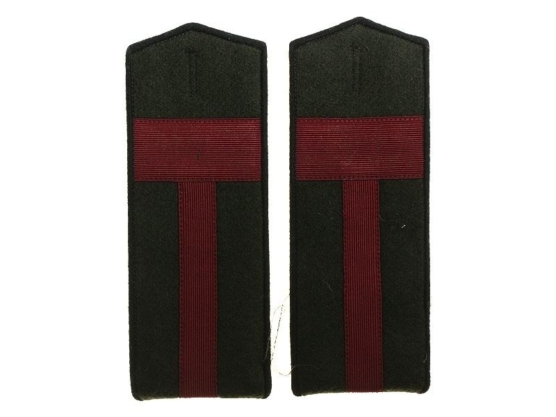 Повседневные погоны рядового состава и младшего комначсостава пятиугольные из сукна цвета по родам войск, с цветной окантовкой, с эмблемами родов войск и служб (латунные желтого металла).