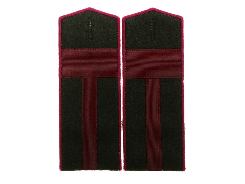 Полевые погоны рядового состава и младшего комначсостава пятиугольные из сукна цвета хаки с цветной окантовкой, без эмблем родов войск и служб (!).