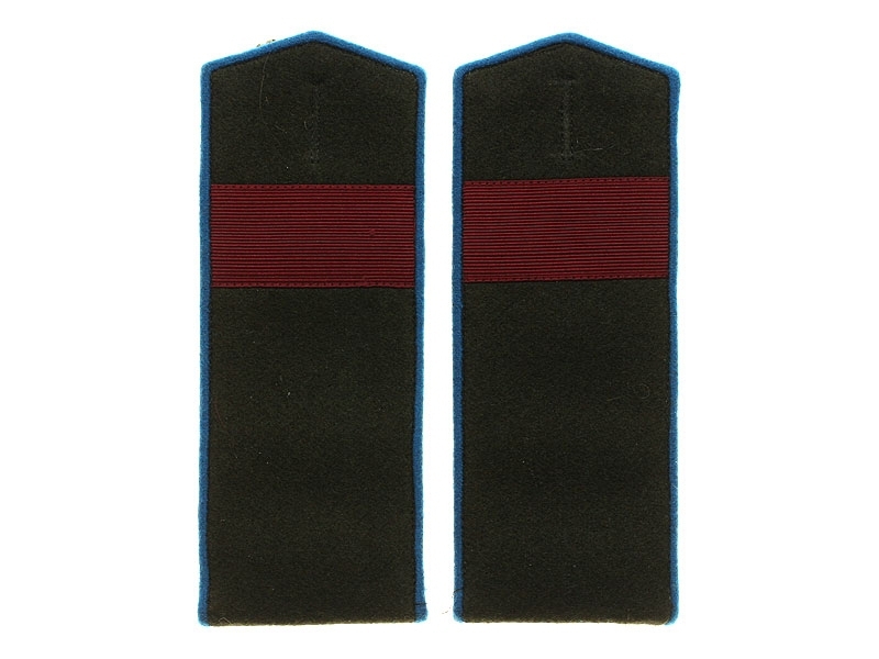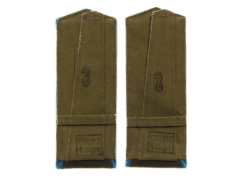 Полевые погоны рядового состава и младшего комначсостава пятиугольные из сукна цвета хаки с цветной окантовкой, без эмблем родов войск и служб (!).