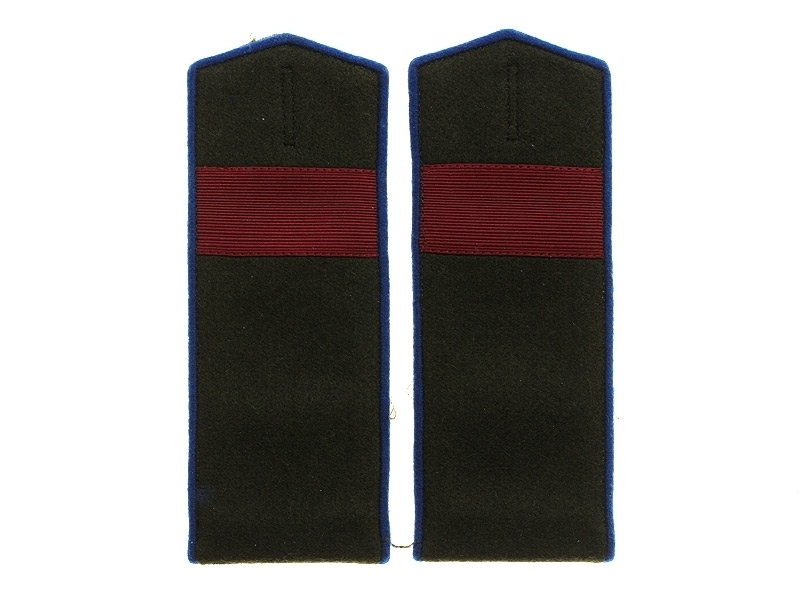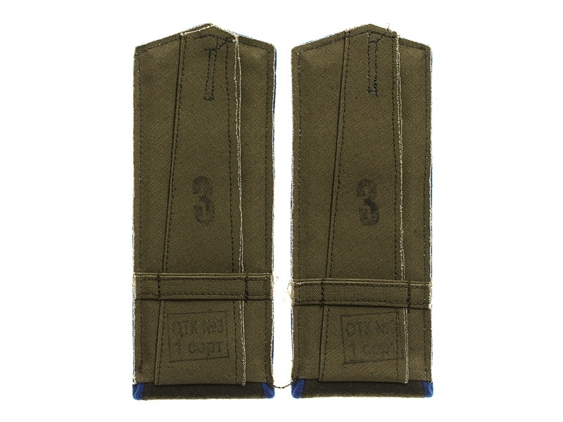 Полевые погоны рядового состава и младшего комначсостава пятиугольные из сукна цвета хаки с цветной окантовкой, без эмблем родов войск и служб (!).