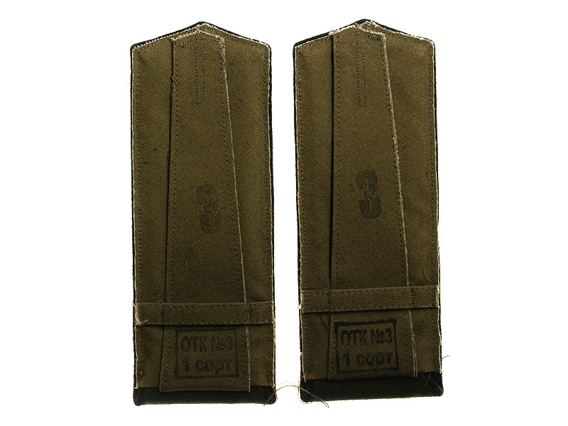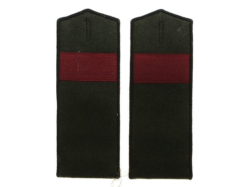 Повседневные погоны рядового состава и младшего комначсостава пятиугольные из сукна цвета по родам войск, с цветной окантовкой, с эмблемами родов войск и служб (латунные желтого металла).