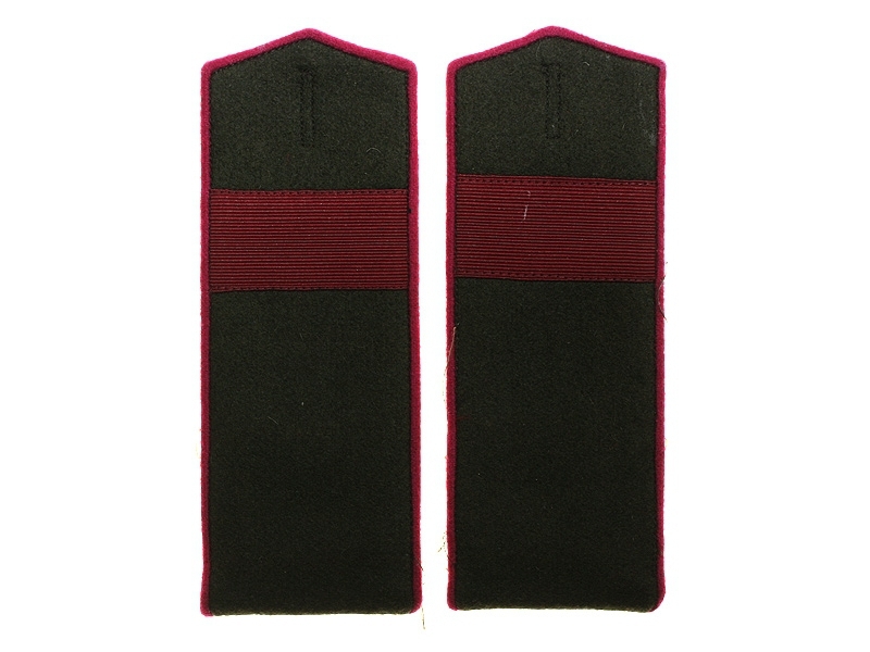 Полевые погоны рядового состава и младшего комначсостава пятиугольные из сукна цвета хаки с цветной окантовкой, без эмблем родов войск и служб (!).