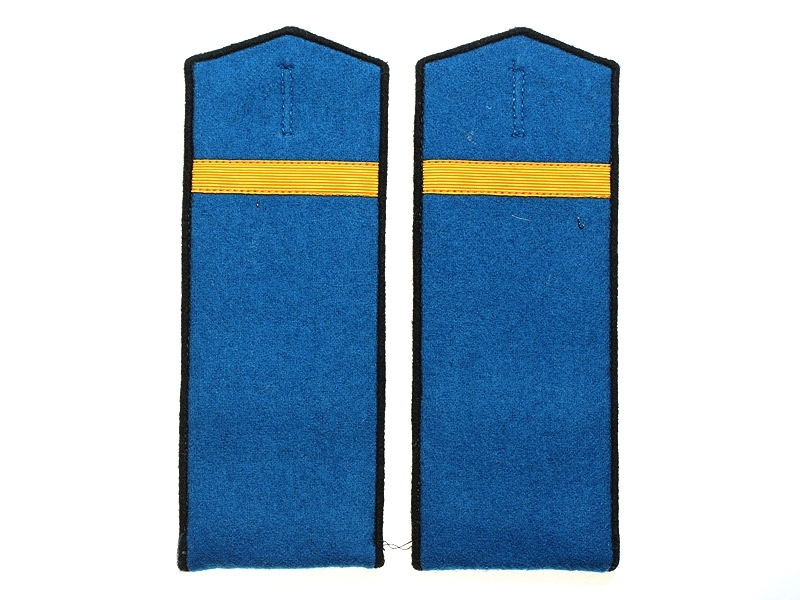 Повседневные погоны рядового состава и младшего комначсостава пятиугольные из сукна цвета по родам войск, с цветной окантовкой, с эмблемами родов войск и служб (латунные желтого металла).