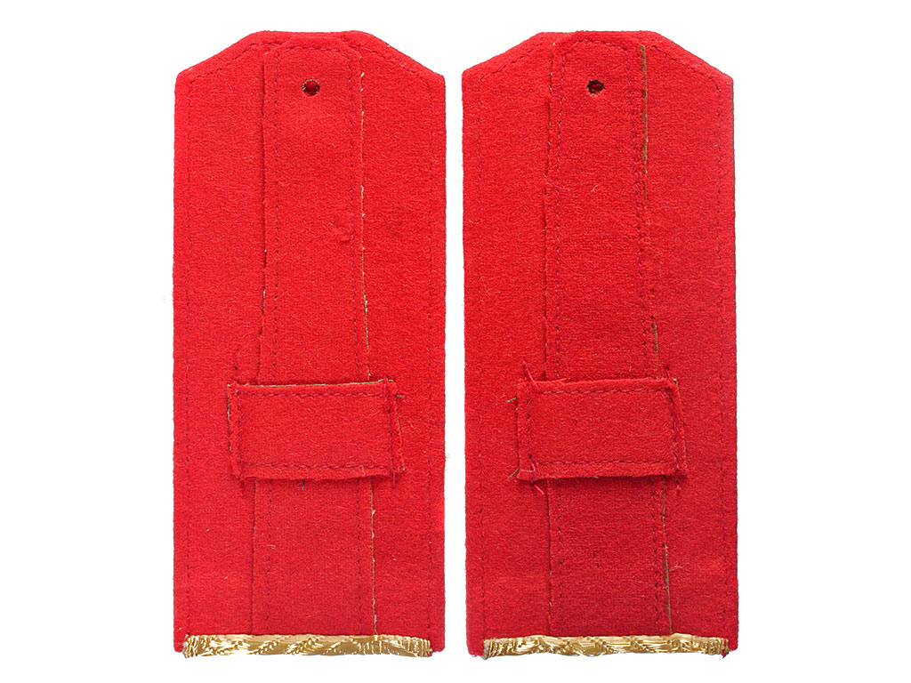Погоны — полевые и повседневные — окантованы по краям, кроме нижнего края, цветным суконным кантом.