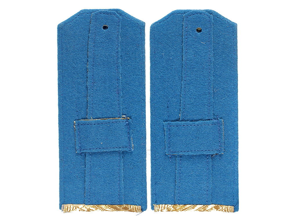 Погоны — полевые и повседневные — окантованы по краям, кроме нижнего края, цветным суконным кантом.