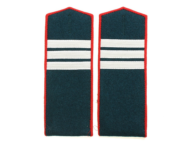 Повседневные погоны рядового состава и младшего комначсостава пятиугольные из сукна цвета по родам войск, с цветной окантовкой, с эмблемами родов войск и служб (латунные желтого металла).