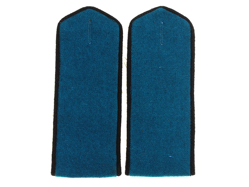 Повседневные погоны рядового состава и младшего комначсостава пятиугольные из сукна цвета по родам войск, с цветной окантовкой, с эмблемами родов войск и служб (латунные желтого металла).