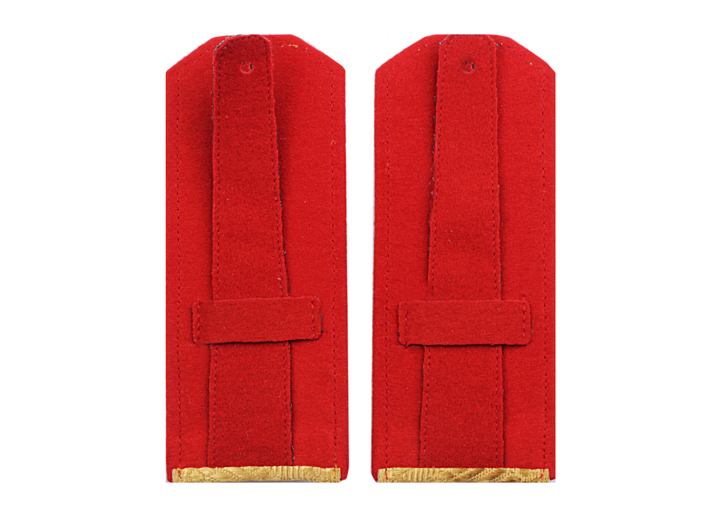 Погоны — полевые и повседневные — окантованы по краям, кроме нижнего края, цветным суконным кантом.