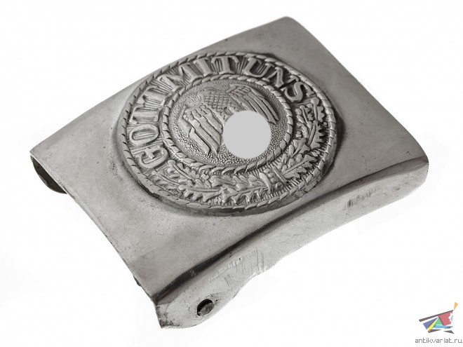 Стальная пряга на ремень рядового и унтер-офицерского состава Вермахта. Без красочного покрытия, полированное поле - так оригинальные стальные пряжки выглядят после долгого ношения и чистки.