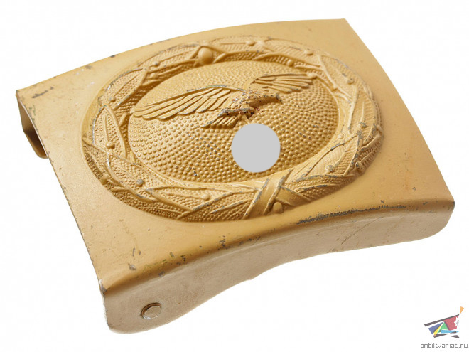 *бакелитовые красновато-коричневые пряжки - в рамках мероприятий по частичной экономии; полированные *некрашеные пряжки из алюминия или другого металла — частного производства для выходной униформы. (Пряжки того же образца использовались в военно- морском флоте Германии (Kriegsmarine), они окрашивались в темно-синий цвет или, с латунным медальоном, сохраняли свой естественный цвет, сам ремень был коричневым.)