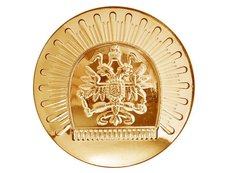 Пуговица кадетская, для кадетских и юнкерских училищ, вузов, преподавательского состава и учащихся старших курсов, желтая позолоченная, 22 мм, Россия.