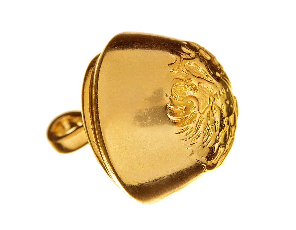 Копия очень высокого качества. Изготовлена из 2-х частей, дутая, пустотелая. Латунь, золочение.