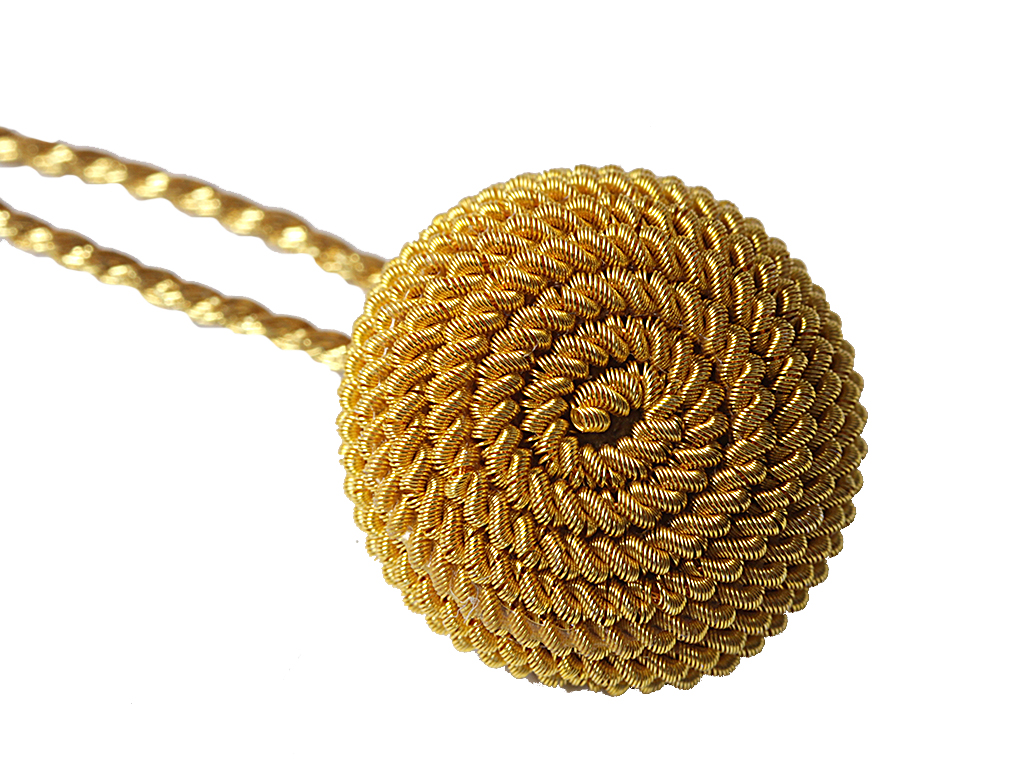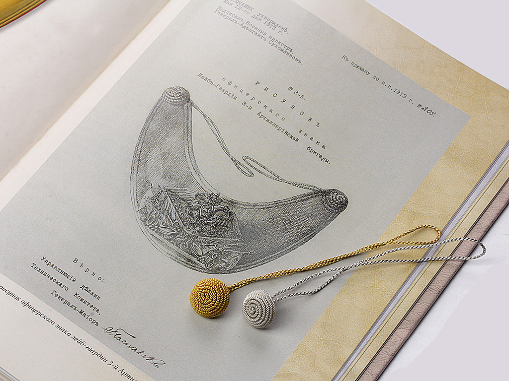 Золотая со шнуром пуговица из тонкого плетеного шнура на твердой основе. Имеет петлю из такого же шнура для крепления к пуговице погона либо эполета. При помощи пары таких пуговиц к обмундированию крепился офицерский нагрудный знак (горжет).