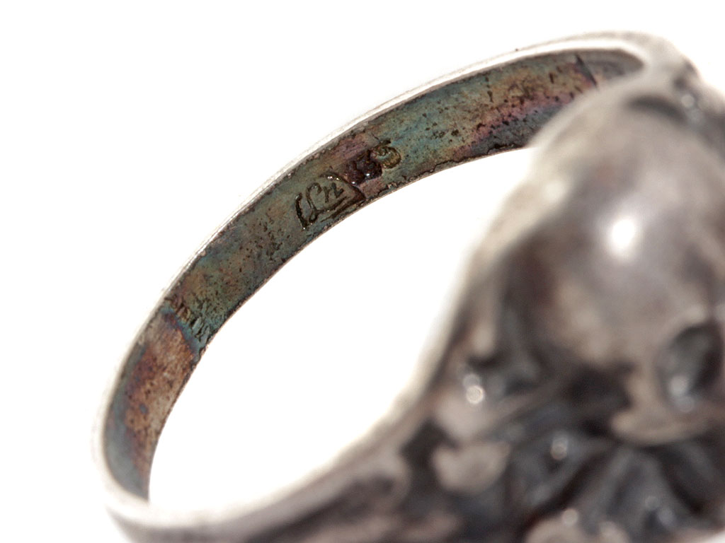 Копия солдатского кольца с изображением черепа. Серебро. Размер 20.