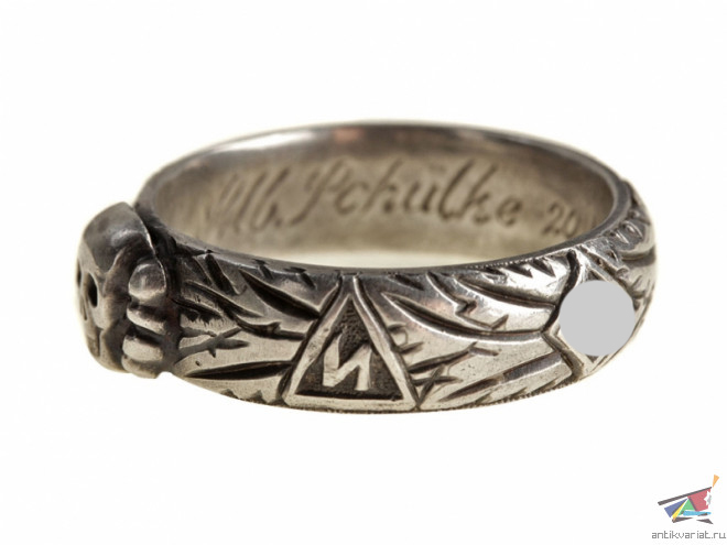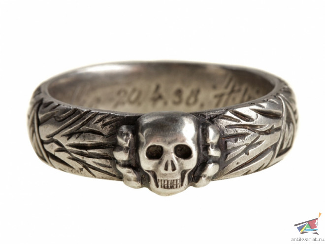 Качественная копия почетного кольца "Мертвая голова". Серебро, с надписью "S.Lb.Schulke 20.4.38 H.Himmler" внутри.