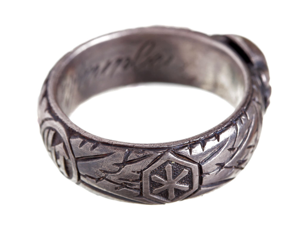 Кольца изготавливались из серебра. Руны на кольце отражают заинтересованность Гиммлера в мифологии и оккультизме: