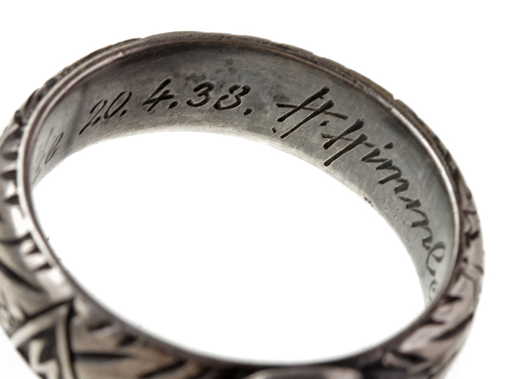 Качественная копия почетного кольца "Мертвая голова". Серебро, с надписью "S.Lb.Schulke 20.4.38 H.Himmler" внутри.