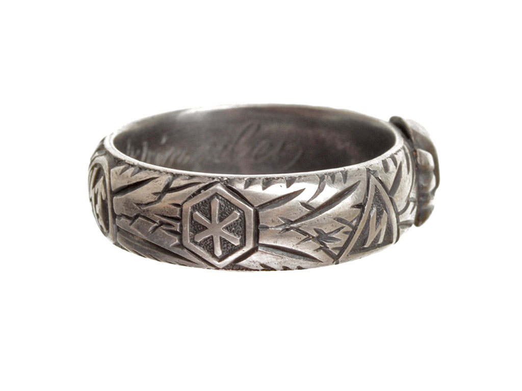 Кольца изготавливались из серебра. Руны на кольце отражают заинтересованность Гиммлера в мифологии и оккультизме: