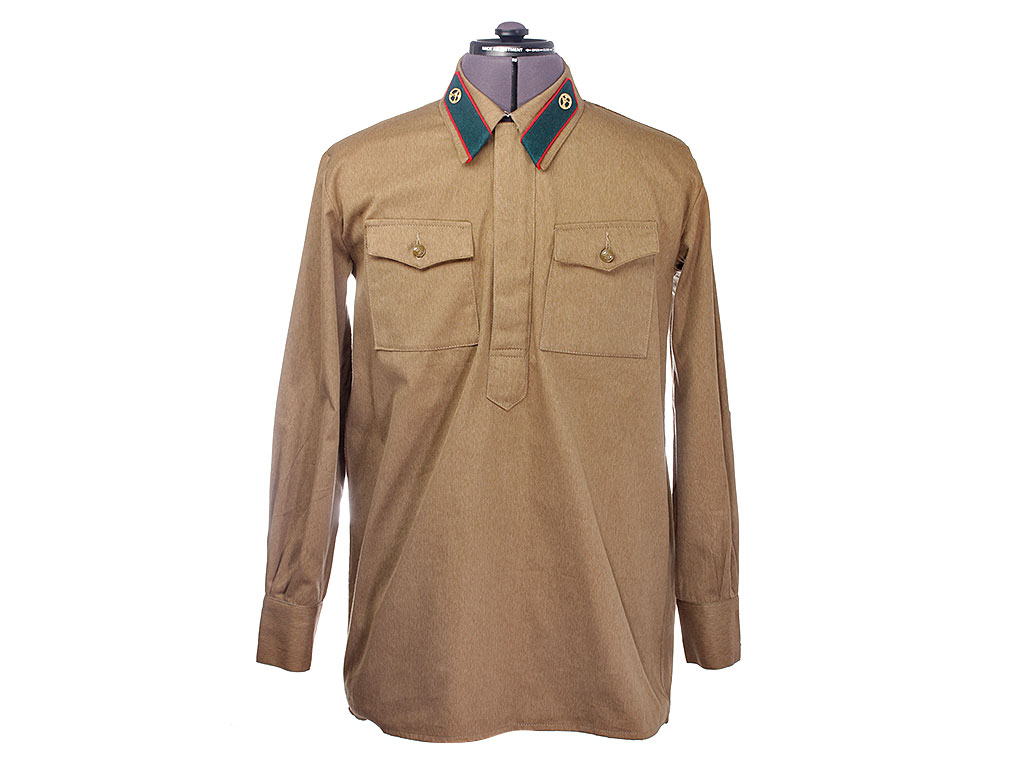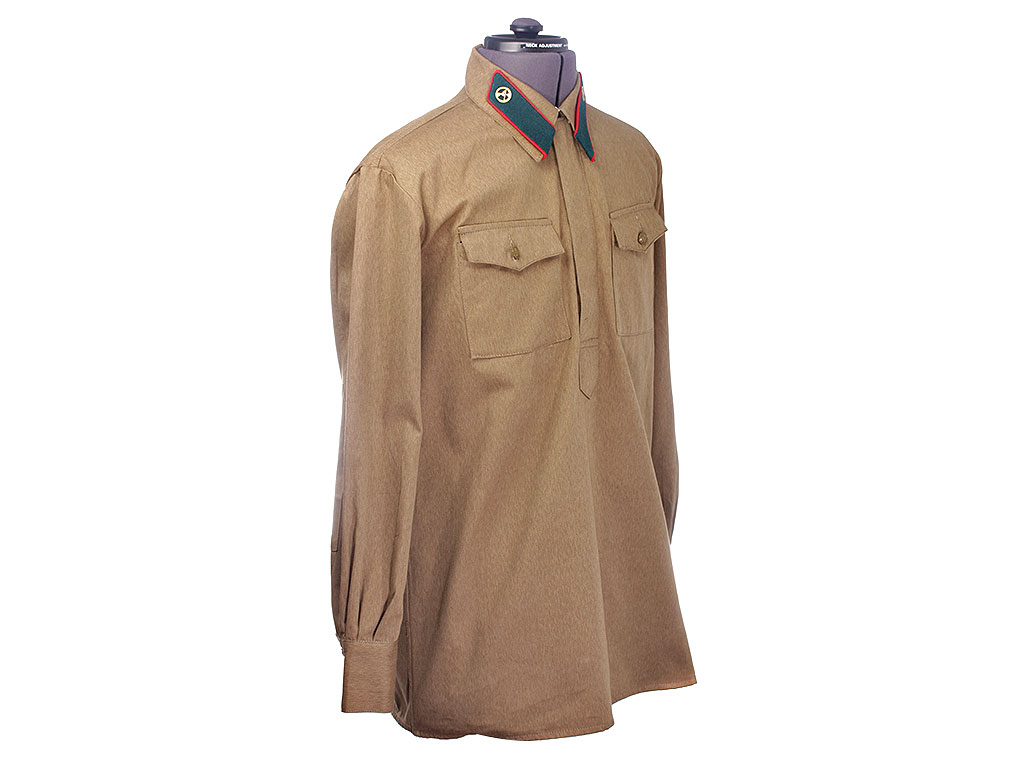 Гимнастерка (летняя рубаха) введена Приказом №176 от 3 декабря 1935 года. Изготовлена из хлопчатобумажной ткани защитного цвета с отложным воротником, застегивающимся на один крючок. На концах воротника нашиты петлицы установленного образца. Рубаха имеет нагрудную планку с застежкой на три пуговицы и два нагрудных пристроченных кармана с клапанами на одной пуговице. Рукава имеют обшлага с двумя пуговицами. Отменена приказом Народного Комиссара Обороны СССР от 18 февраля 1943 года.