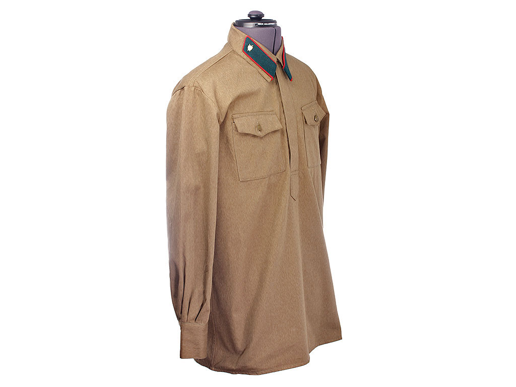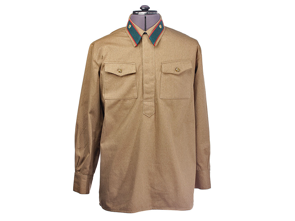 Гимнастерка (летняя рубаха) введена Приказом №176 от 3 декабря 1935 года. Изготовлена из хлопчатобумажной ткани защитного цвета с отложным воротником, застегивающимся на один крючок. На концах воротника нашиты петлицы установленного образца. Рубаха имеет нагрудную планку с застежкой на три пуговицы и два нагрудных пристроченных кармана с клапанами на одной пуговице. Рукава имеют обшлага с двумя пуговицами. Отменена приказом Народного Комиссара Обороны СССР от 18 февраля 1943 года.