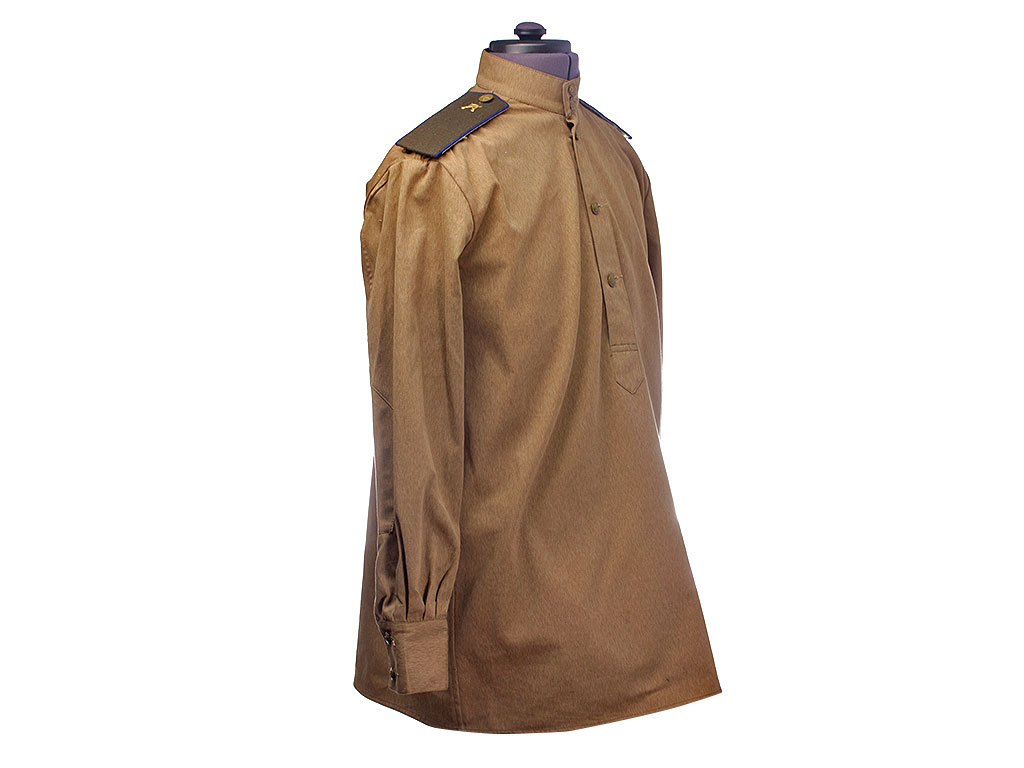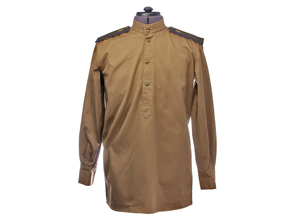 Гимнастерка (летняя рубаха) введена Приказом Народного Комиссара Обороны СССР № 25 от 15 января 1943 года. Изготавлена из хлопчатобумажной ткани защитного цвета со стоячим мягким воротником, застегивающимся на две форменные пуговицы малого размера через сквозные петли. На плечах пристегнуты погоны установленного образца. Рубаха имеет нагрудную планку с застежкой на три пуговицы; у рядового состава нагрудные карманы на 1943 год отсутствуют. Рукава имеют обшлага с двумя пуговицами.