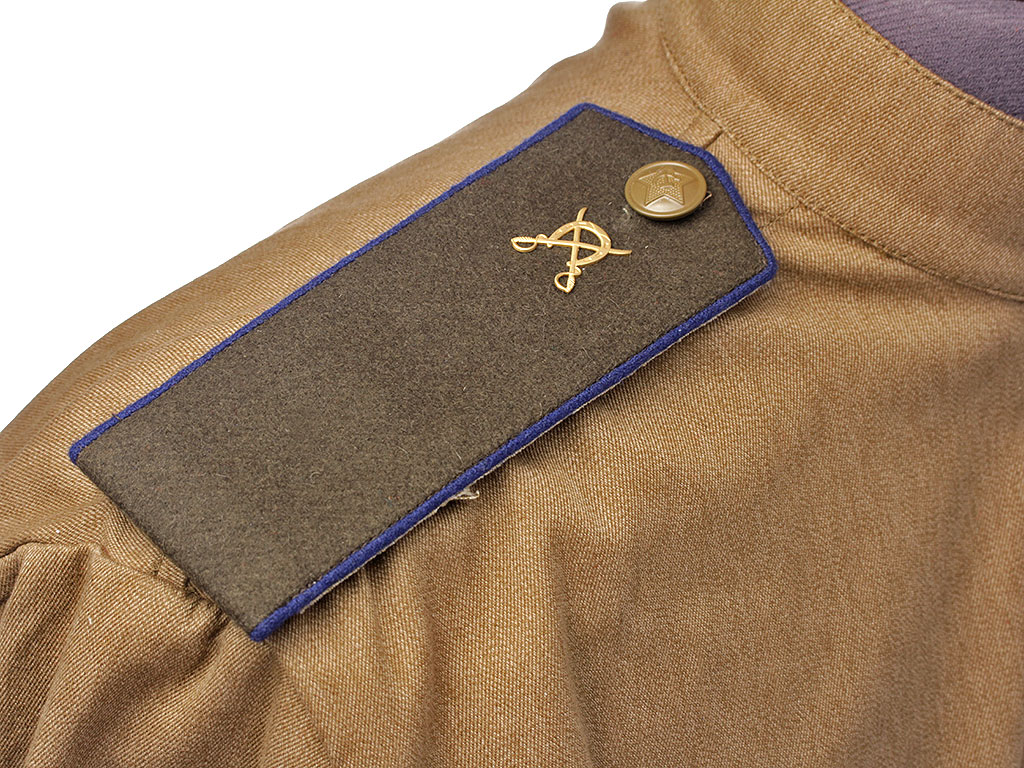 Копия высокого качества, ткань максимально приближена к оригиналу по качеству изготовления и фактуре. При изготовлении погон также в качестве образца были использованы оригинальные погоны. Погонные знаки (эмблемы) изготовлены штампом и практически полностью повторяют оригинал.