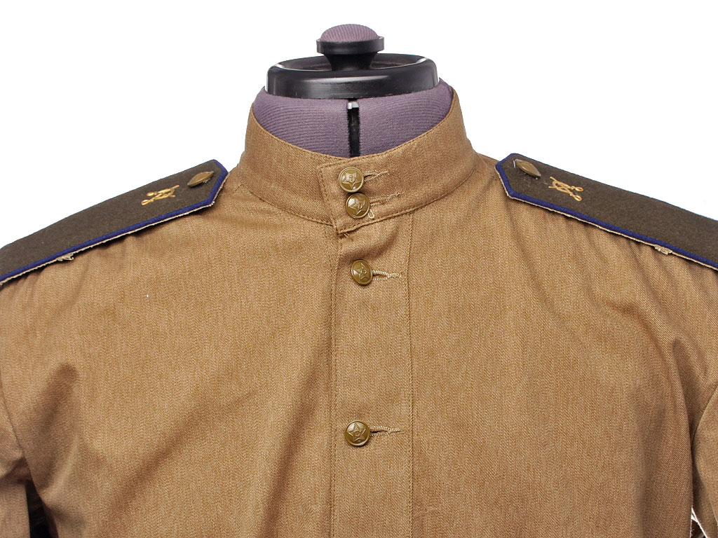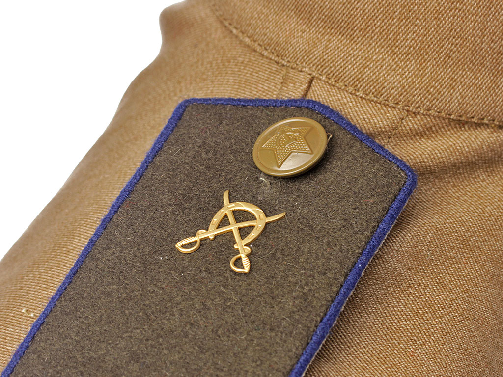 Летняя полевая хлопчатобумажная гимнастерка Рабоче Крестьянской Красной Армии (РККА) образца 1943 года с эмблемами кавалериста образца 1936/43 года и галифе в комплекте.
