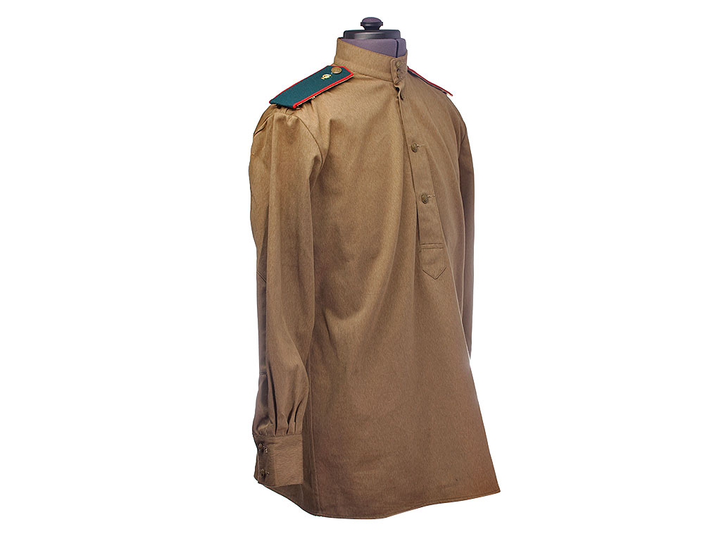 Гимнастерка (летняя рубаха) введена Приказом Народного Комиссара Обороны СССР № 25 от 15 января 1943 года. Изготавлена из хлопчатобумажной ткани защитного цвета со стоячим мягким воротником, застегивающимся на две форменные пуговицы малого размера через сквозные петли. На плечах пристегнуты погоны установленного образца. Рубаха имеет нагрудную планку с застежкой на три пуговицы; у рядового состава нагрудные карманы на 1943 год отсутствуют. Рукава имеют обшлага с двумя пуговицами.