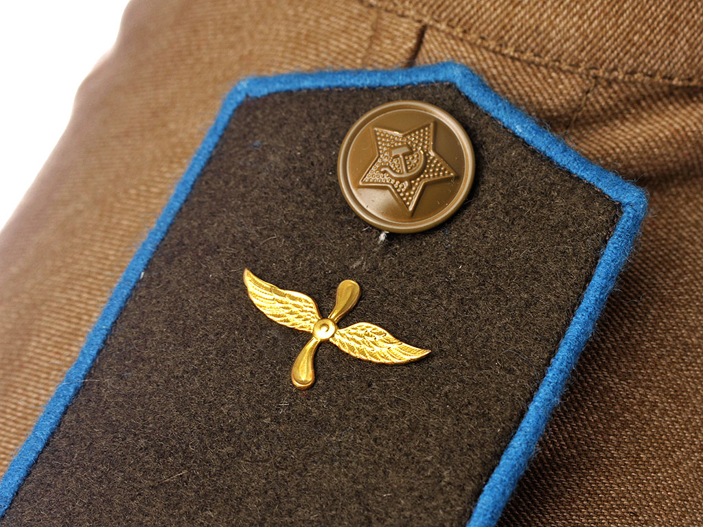 Летняя полевая хлопчатобумажная гимнастерка Рабоче Крестьянской Красной Армии (РККА) образца 1943 года с эмблемами военно-воздушных сил образца 1936/43 года и галифе в комплекте.