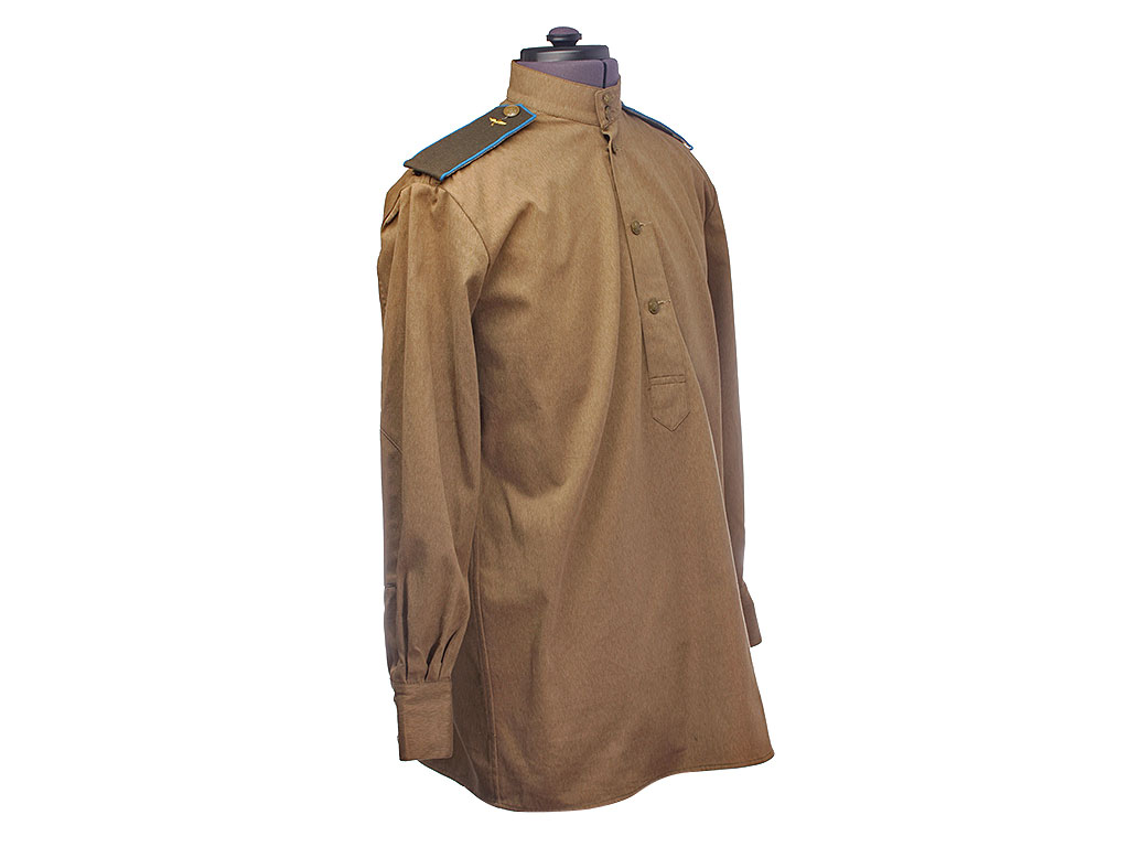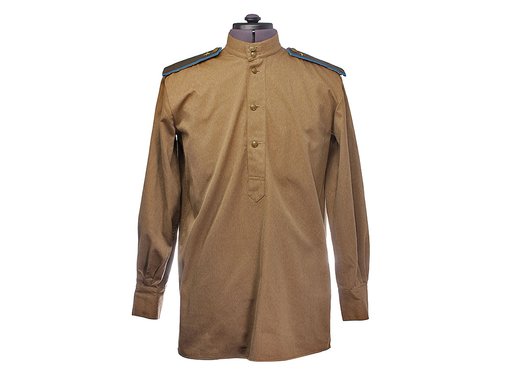 Гимнастерка (летняя рубаха) введена Приказом Народного Комиссара Обороны СССР № 25 от 15 января 1943 года. Изготавлена из хлопчатобумажной ткани защитного цвета со стоячим мягким воротником, застегивающимся на две форменные пуговицы малого размера через сквозные петли. На плечах пристегнуты погоны установленного образца. Рубаха имеет нагрудную планку с застежкой на три пуговицы; у рядового состава нагрудные карманы на 1943 год отсутствуют. Рукава имеют обшлага с двумя пуговицами.
