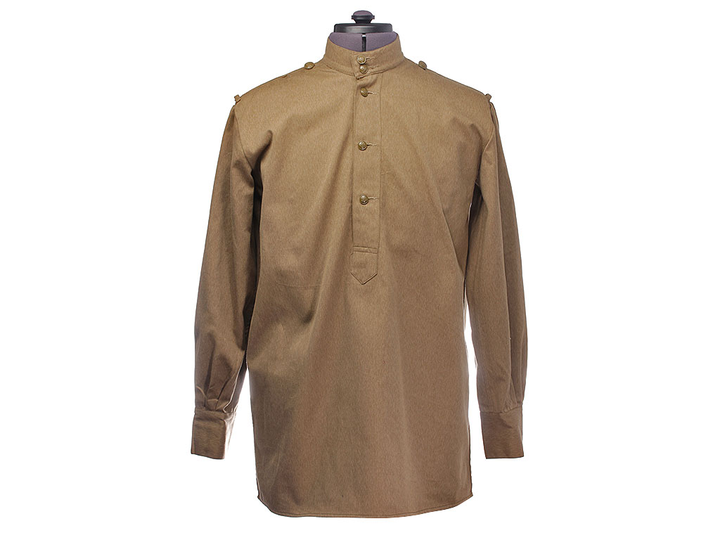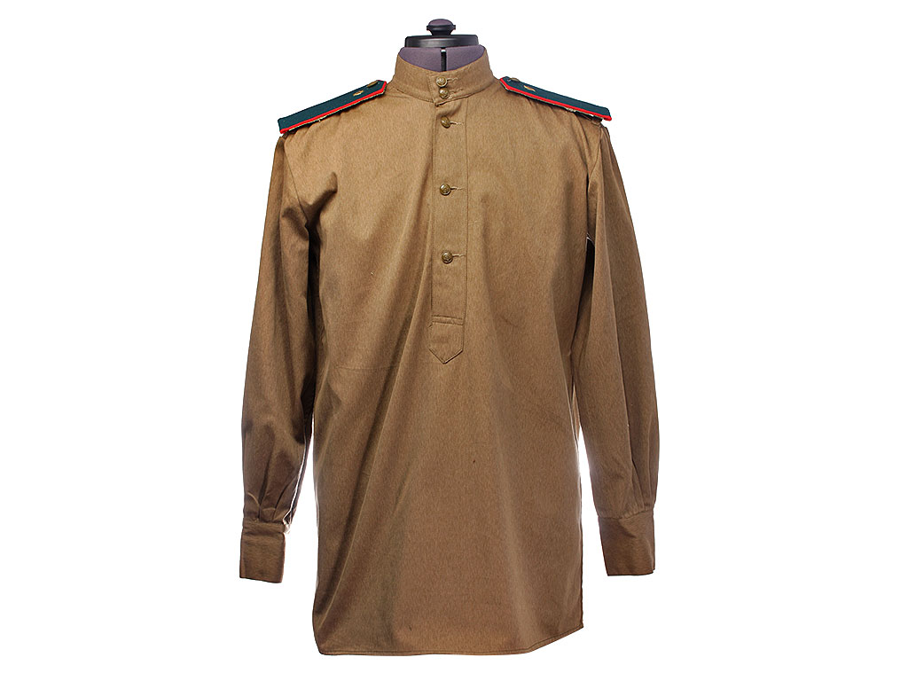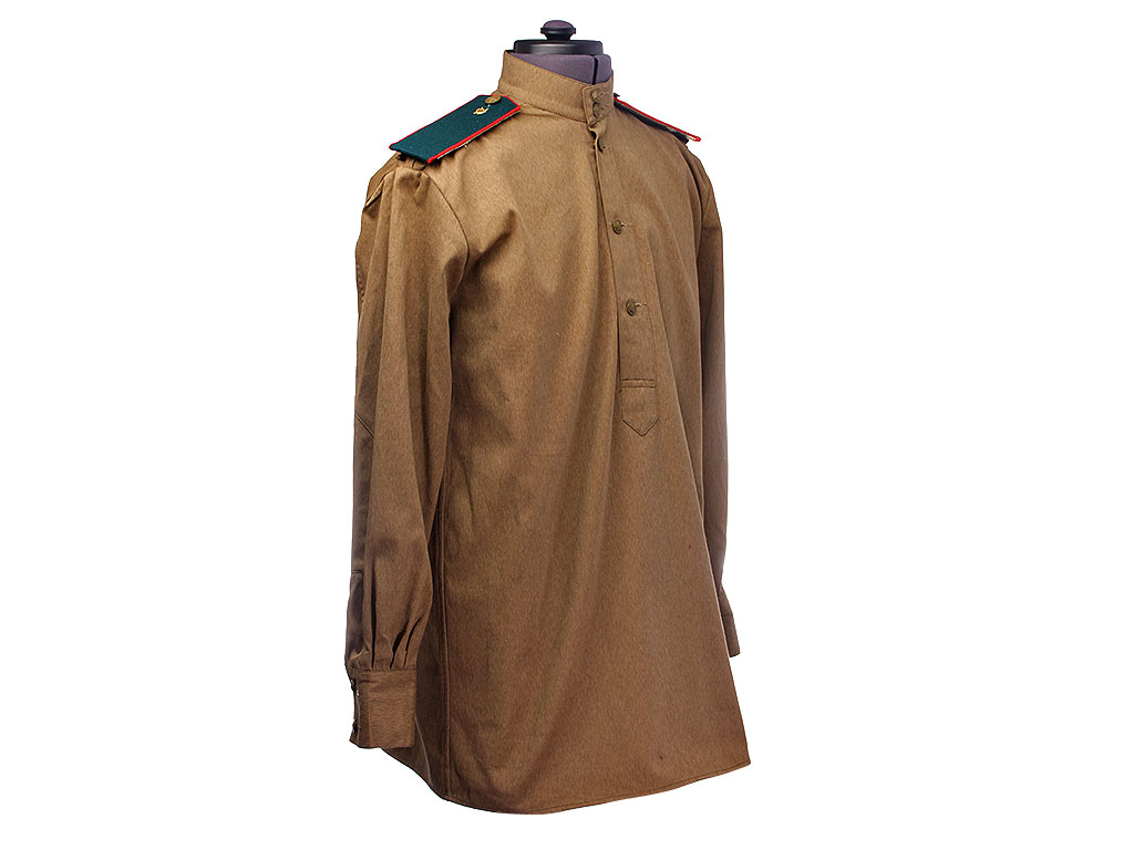 Гимнастерка (летняя рубаха) введена Приказом Народного Комиссара Обороны СССР № 25 от 15 января 1943 года. Изготавлена из хлопчатобумажной ткани защитного цвета со стоячим мягким воротником, застегивающимся на две форменные пуговицы малого размера через сквозные петли. На плечах пристегнуты погоны установленного образца. Рубаха имеет нагрудную планку с застежкой на три пуговицы; у рядового состава нагрудные карманы на 1943 год отсутствуют. Рукава имеют обшлага с двумя пуговицами.