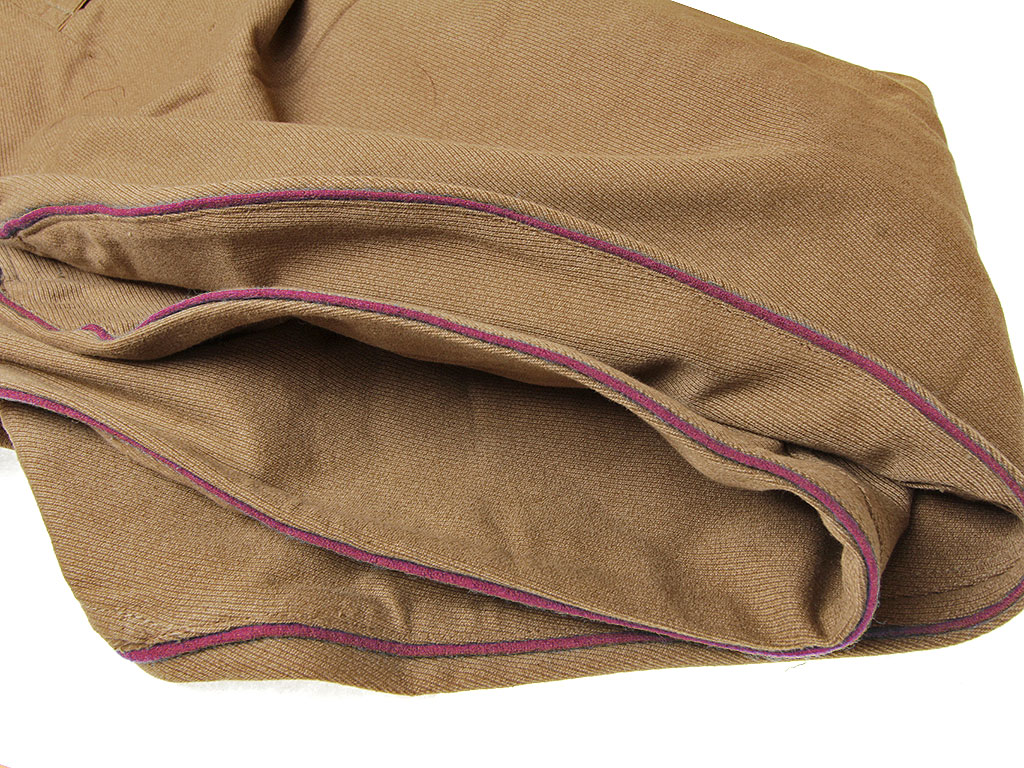 Погоны имеют поле цвета хаки, бордовый просвет и малиновый кант.