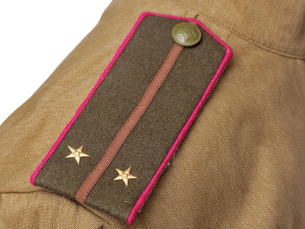 Летняя полевая хлопчатобумажная гимнастерка образца 1943 года со знаками различия (полевые погоны) лейтенанта пехоты РККА образца 1943 года.
