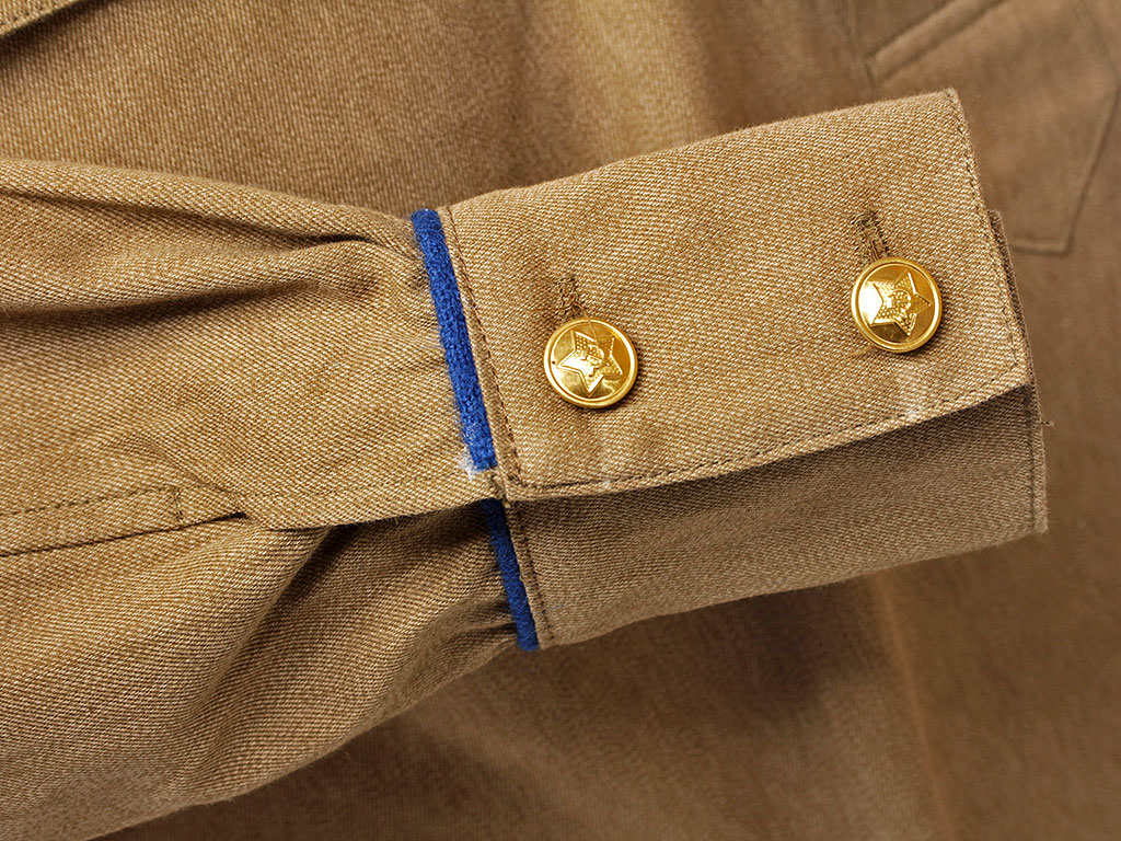На погонах - форменные позолоченные пуговицы со звездой, в центре которой серп и молот.