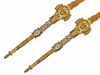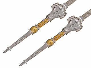 Пожалуй, самый экзотический образец европейского холодного оружия — меч с пламенеющим клинком, известный как фламберг. В классическом варианте это тяжелый двуручный меч с развитой гардой и волнообразным клинком.